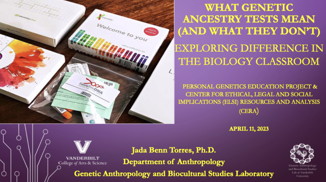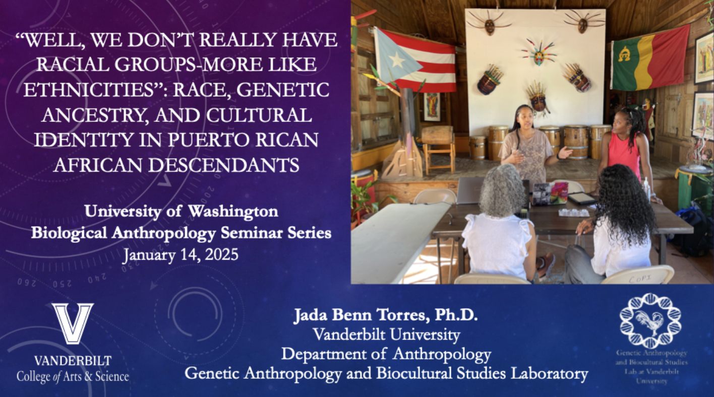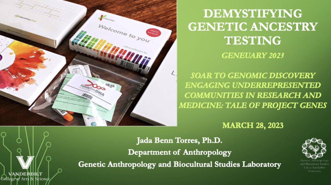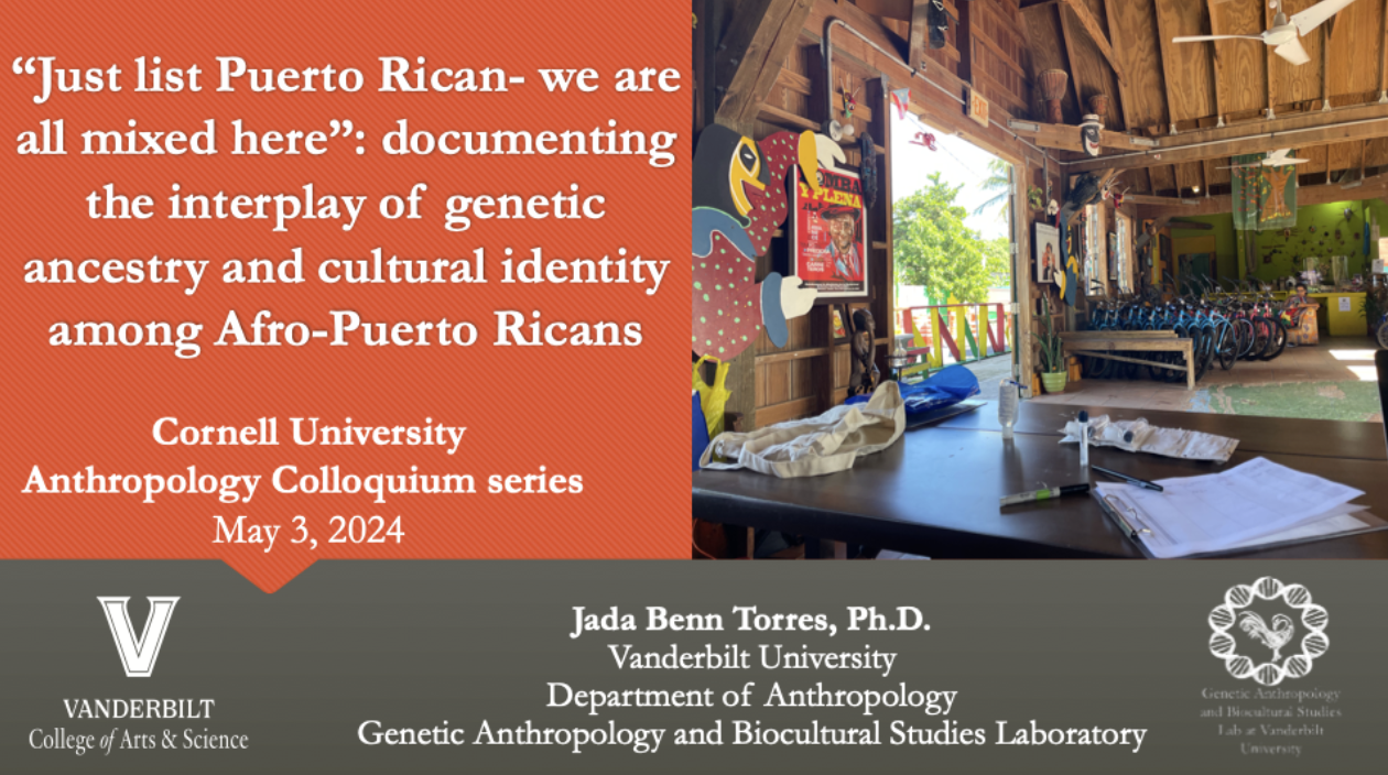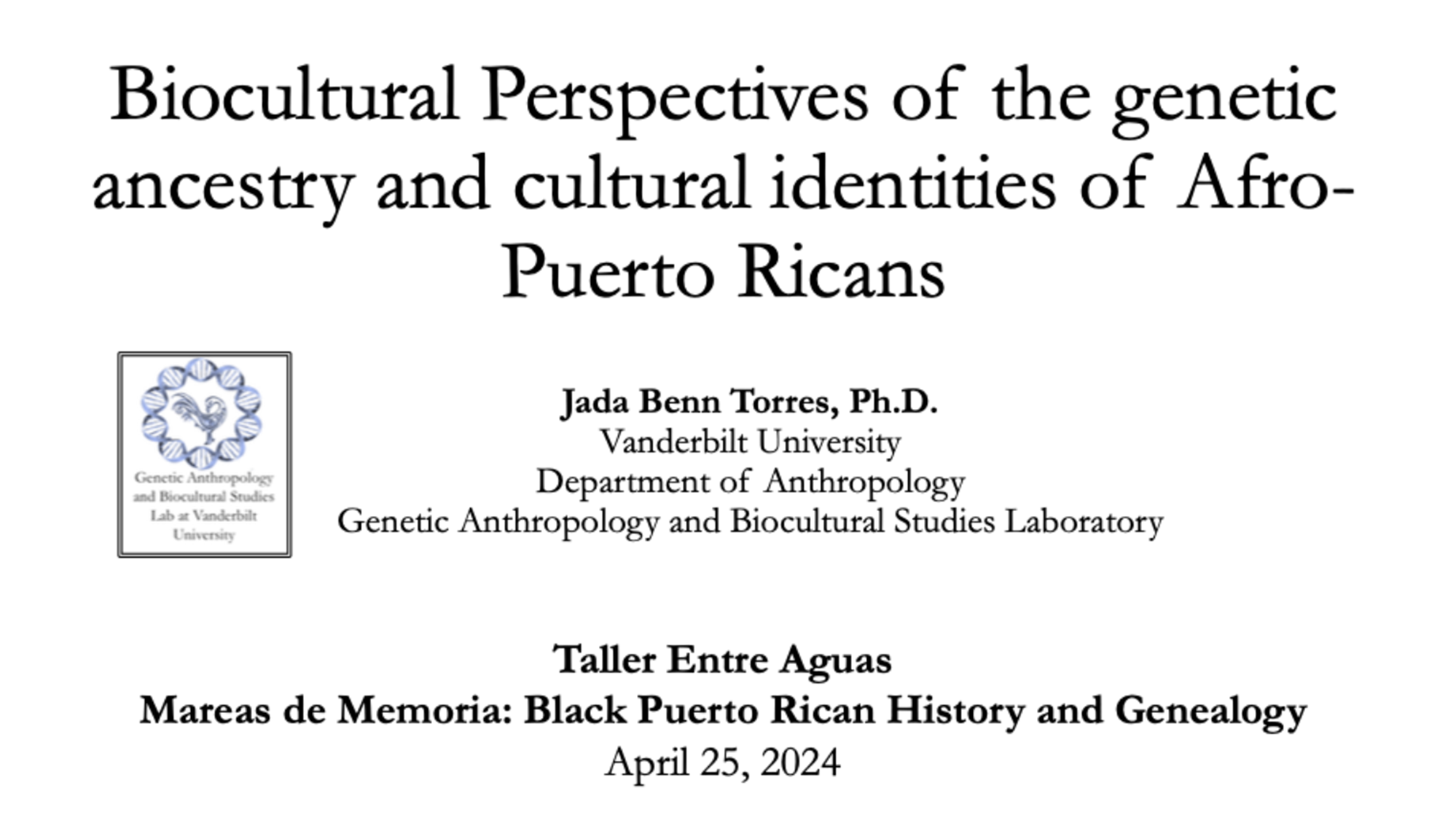 Recent Presentations 2025 2024 Just List Puerto Rican Biocultural Perspectives of the genetic ancestry and cultural identities of Puerto Ricans Spit Here Please 2023 Genetic ancestry testing within an Afro-Puerto Rican community AABA Presidential Plenary Panel What genetic ancestry tests mean (and what they don’t) Demystifying Genetic Ancestry Testing Implicating Race in Disease Genetics, Race, and the Mirage of Ancestry Testing