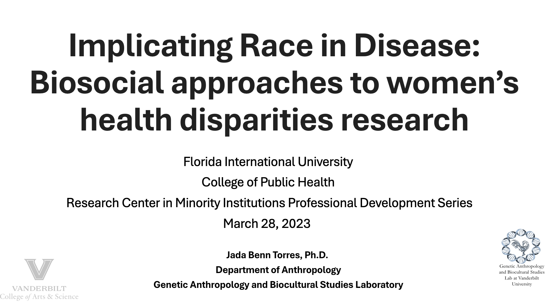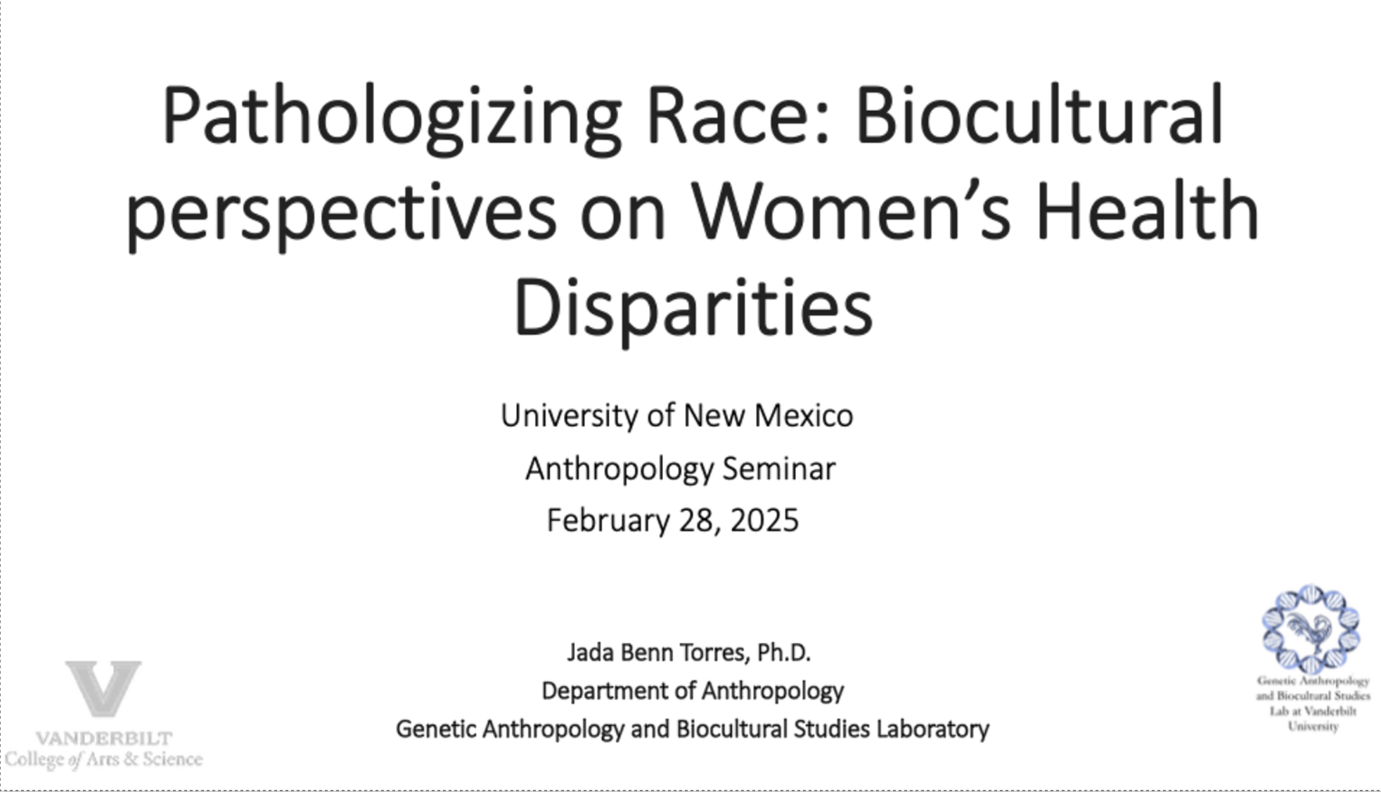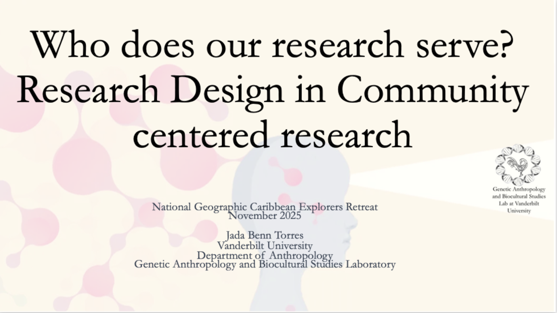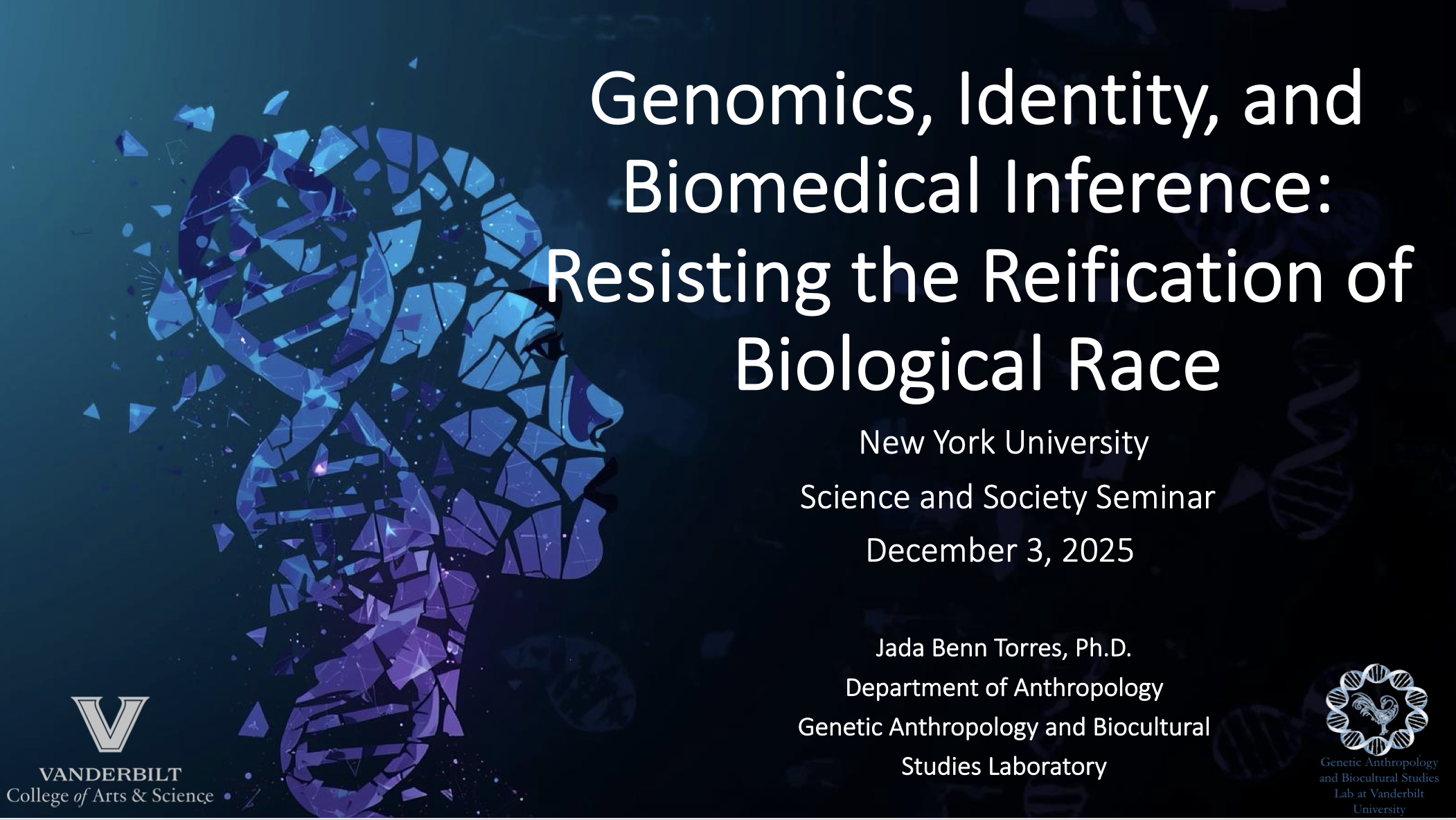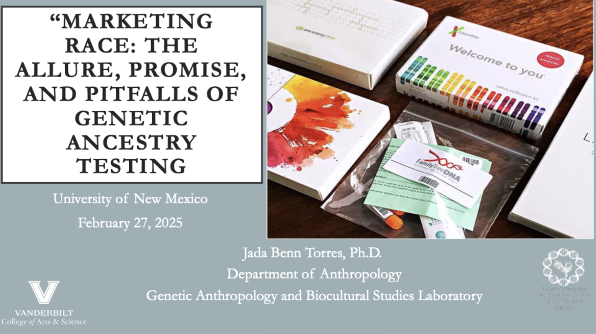 Recent Presentations 2025 2024 Just List Puerto Rican Biocultural Perspectives of the genetic ancestry and cultural identities of Puerto Ricans Spit Here Please 2023 Genetic ancestry testing within an Afro-Puerto Rican community AABA Presidential Plenary Panel What genetic ancestry tests mean (and what they don’t) Demystifying Genetic Ancestry Testing Implicating Race in Disease Genetics, Race, and the Mirage of Ancestry Testing